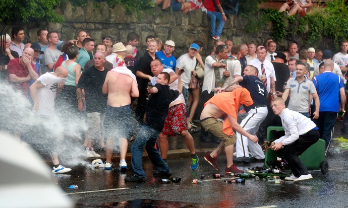 in horror as a missile hit its target and a policeman slumped to the ground. We saw him having to be literally dragged away by other policemen eager to protect him and get him to safety. We were able to see at close hand what these men have to put up with when crowds are brought on to the street without supervision.
